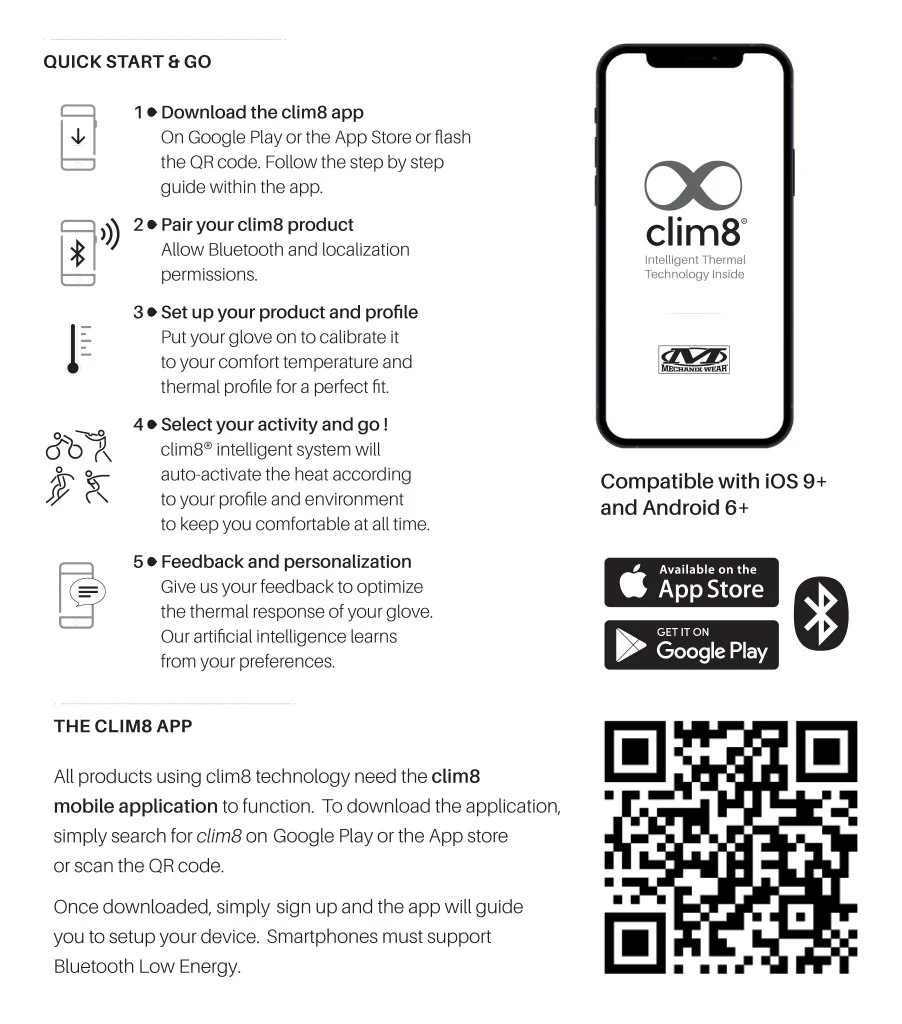 - clim8® intelligent Thermal Technology Heating System that automatically turns on when glove is placed on hand.