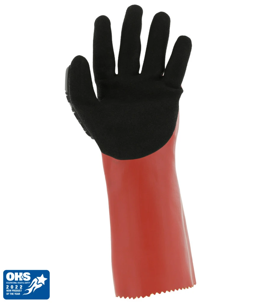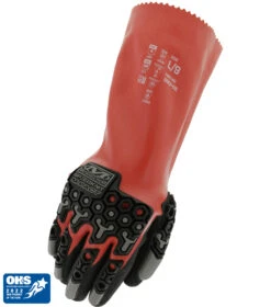 Our SpeedKnit™ M-Pact® S5EP02 Chemical gloves are fully coated in nitrile to prevent chemicals, oils, solvents, acids and caustics from contaminating hard working hands. We use a machine-knit blend of high dexterity 18-gauge HPPE and Glass coated with sandy nitrile to achieve ANSI A4 cut resistance. Our ergonomically designed TPR is sonic welded for a seamless fit and ANSI Level 1 impact resistance.