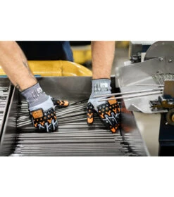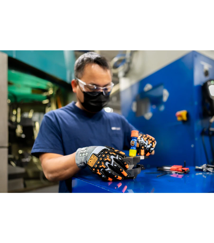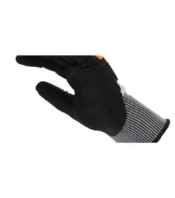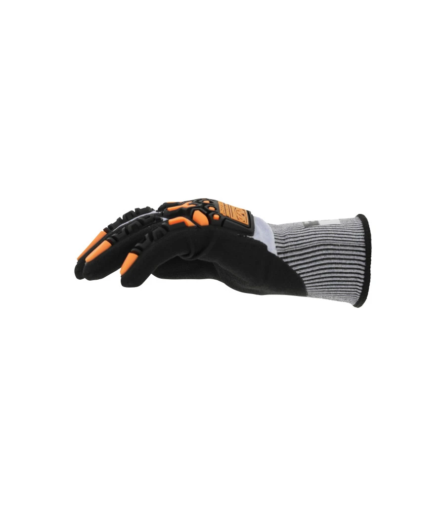 Our SpeedKnit™ M-Pact® S5EP08 is designed to protect working hands with a combination of functional impact resistance and high-dexterity cut performance. We use a machine-knit blend of 18-gauge HPPE and Tungsten steel coated with sandy nitrile to achieve ANSI A5 cut resistance. Our ergonomically designed TPR is sonic welded for a seamless fit and ANSI Level 2 impact resistance.