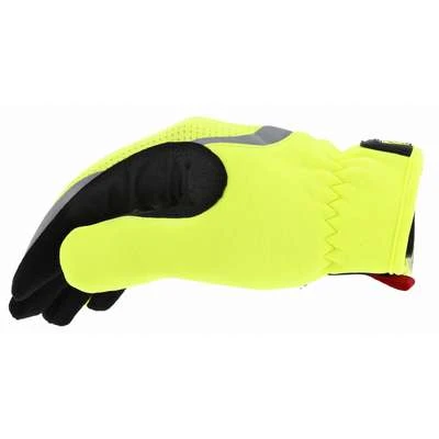 These mechanics-style gloves have a synthetic leather palm. Synthetic leather is a durable, abrasion-resistant fabric that is lighter and easier to clean than leather. Mechanics-style gloves have good dexterity and are often worn when performing basic tasks in general maintenance and repair operations.