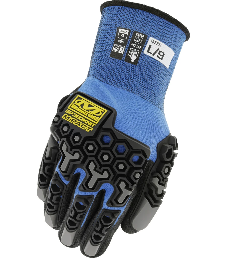 Our SpeedKnit™ M-Pact® is designed to protect working hands with a combination of functional impact resistance and proven cut performance. Utilizing a 13-gauge knit liner coated with a sandy nitrile palm that provides grip and touchscreen capability. Our ergonomically designed TPR is sonic welded for a seamless fit and ANSI Level 2 impact resistance.