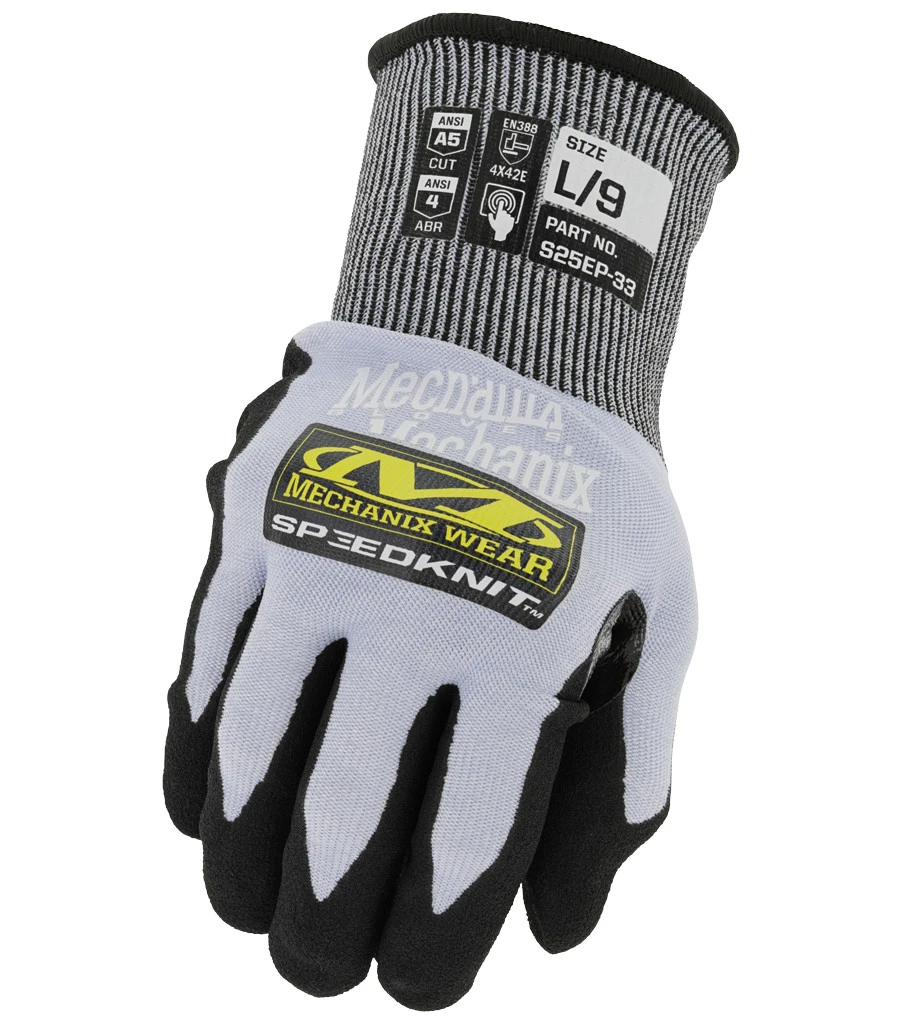 Crafted with an 18-gauge HPPE blended shell, the SpeedKnit™ S25EP33 provides supreme cut protection without sacrificing sensitivity or fit. Featuring a sandy nitrile palm coating with a reinforced thumb saddle this glove maintains grip in oily and wet work conditions and is ANSI cut level A5 and ANSI abrasion level 4 certified.